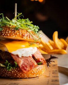 Chicken lovers can opt for The Chick, while vegetarian guests will enjoy the Veggi Burger, made with grilled halloumi and avocado for a lighter but filling alternative.